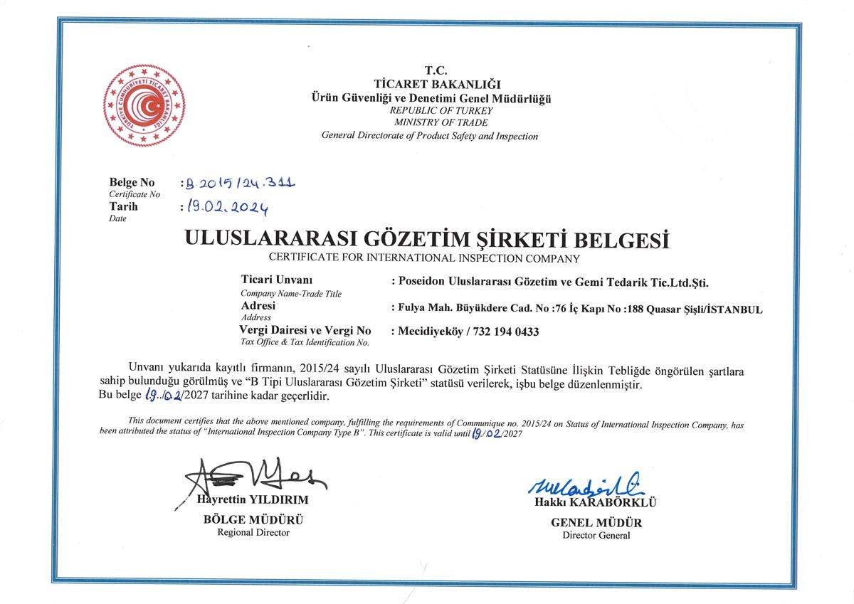 POSEİDON ULUSLARARASI GÖZETİM, uluslararası denizcilik sektöründe bağımsız, tarafsız ve profesyonel gözetim hizmetleri sağlayan lider bir şirkettir. Deneyimli uzmanlarımız ve gelişmiş teknolojik ekipmanlarımızla, operasyonlarınızın güvenliğini ve uluslararası standartlara uygunluğunu sağlıyoruz. Deniz taşımacılığı ve lojistik süreçlerinde güvenlik, kalite ve operasyonel verimlilik büyük önem taşımaktadır. POSEİDON, küresel çapta sunduğu deniz gözetim ve denetim hizmetleriyle, gemi sahiplerinden lojistik firmalarına, sigorta şirketlerinden liman işletmecilerine kadar geniş bir müşteri portföyüne hizmet vermektedir.